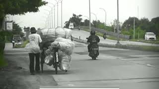 - pasca banjir,Terpaksa mobil ini harus di gotong rame rame karena ketinggian air di jalanan